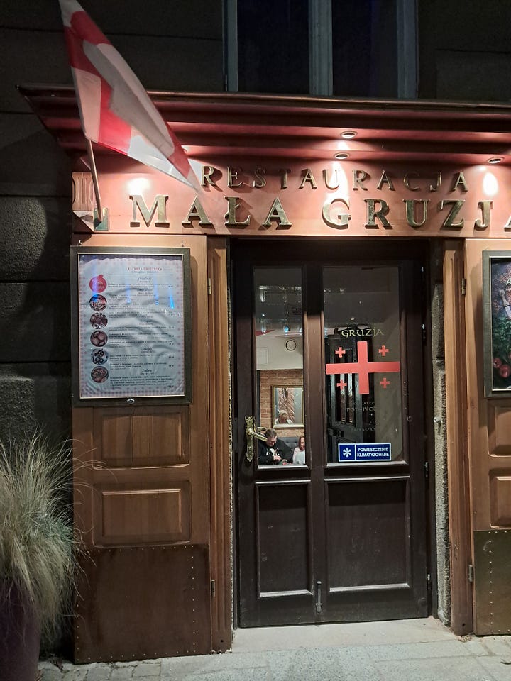 And finally, I had a lovely dinner at Mała Gruzja (Little Georgia), where I interviewed the Georgian chef, Ketino, together with a long-time waiter. They kindly answered all my questions: Not just about Mała Gruzja, which has been serving up delicacies for nearly twenty years, but also about life in Warsaw, which has seen a large influx of Georgians since 2017.